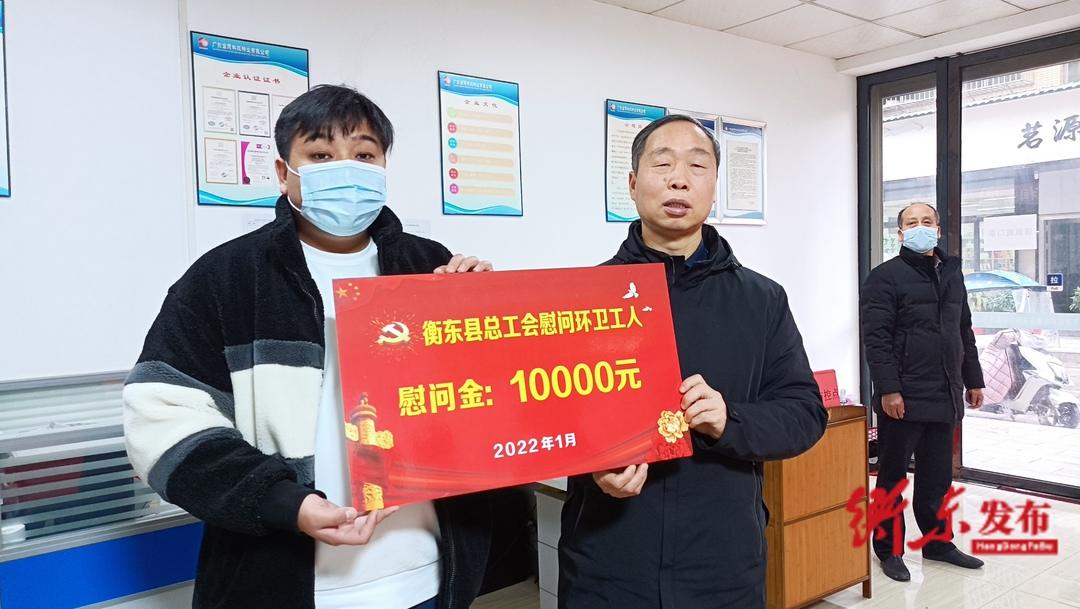 1月26日下午,县总工会前往衡东宏德物业管理有限公司和湖南美中环境生态科技有限公司衡东县分公司开展春节慰问环卫工活动,为他们送去春节慰问信和慰问金,感谢他们为建设美丽衡东作出的奉献。同时也希望更多人从自身做起,爱护环境,关爱环卫工人。