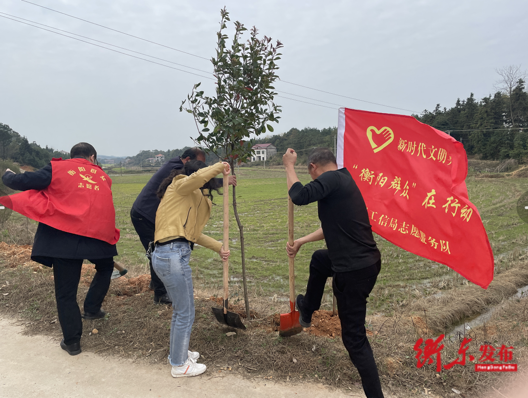 3月11日,国家税务总局衡东县税务局组织志愿者们来到杨林镇新扶村开展义务植树活动,用实际行动践行绿色发展理念,为乡村振兴贡献税务力量。在大家的共同努力下,一棵棵象征着"生态振兴"的树苗在春风的吹拂下焕发出盎然生机。据悉,为了扮绿新扶村乡村道路,国家税务总局衡东县税务局投入帮扶资金15000余元购置各类苗木900余株。