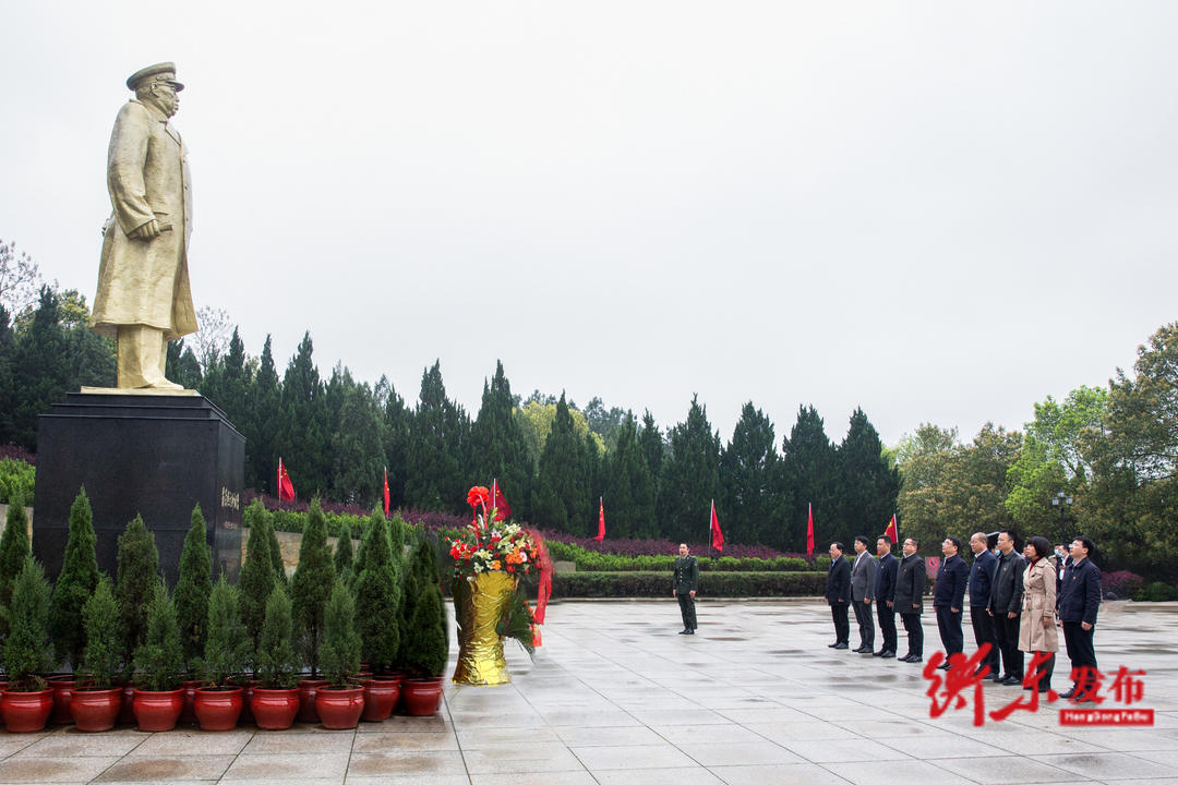 图:衡阳市委常委、市政府党组副书记于新凡向罗荣桓元帅铜像敬献花篮
