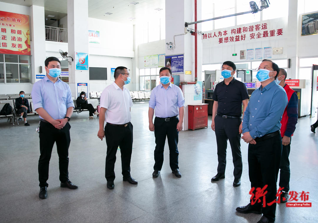图:谭建华察看衡东汽车站消防安全设施配备、安全运行管理、疫情防控措施落实等情况