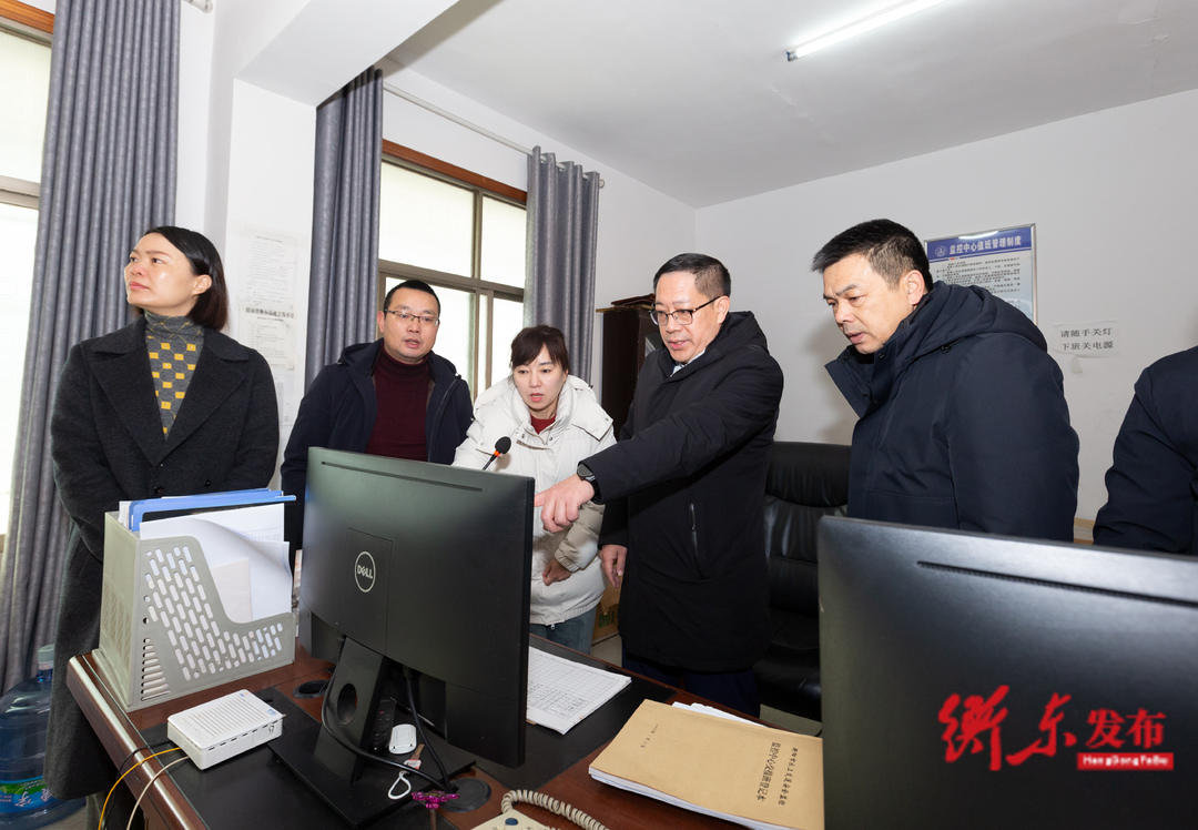 图:县委副书记、县长蒋崇华在县水运事务中心水运视频监控室检查值班值守情况并向一线人员送去新春祝福、