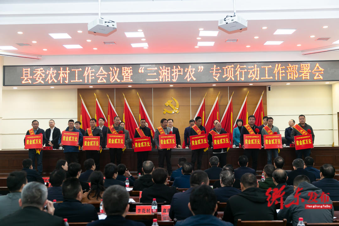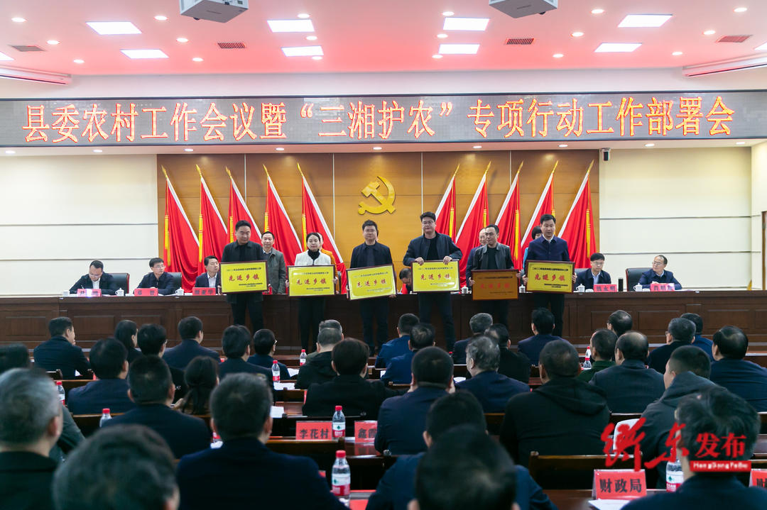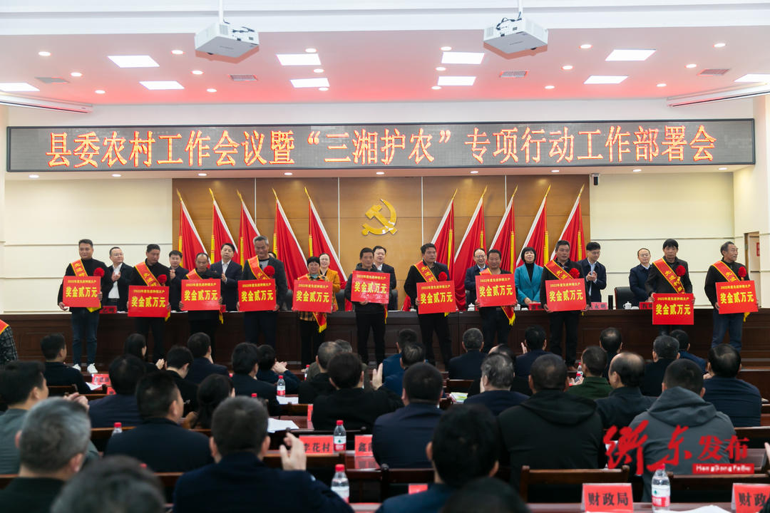 会上,县委常委、县委组织部部长雷继红同志宣读2022年粮食生产工作先进乡镇和先进种粮主体的通报、2022年人居环境整治工作先进乡镇通报和2022年优秀乡村车间通报。县委常委、县纪委书记、县监委主任肖明旭同志作“三湘护农”专项行动工作安排。县人民政府副县长尹乙鸣同志作农业农村工作报告。会议还表彰了粮食生产先进乡镇、农村人居环境整治提升先进乡镇及先进种粮大户。