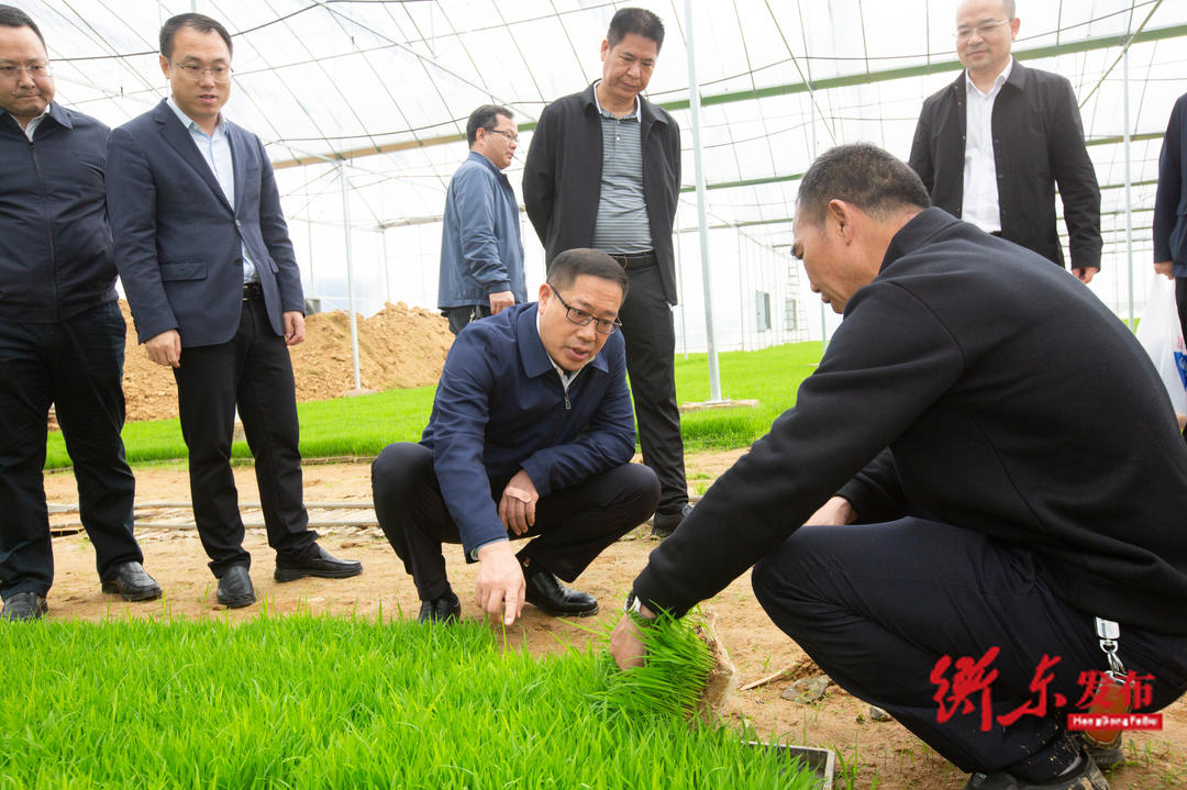 来到洣水镇采霞村,蒋崇华与种田大户罗湘桂边走边交流春耕生产进展情况,对农户的田间管理、机械设备的使用、育秧等问题进行了亲切交流。先后察看了育秧工厂内的秧苗生产线、育秧棚、蔬菜大棚等,听取农户、镇村干部和相关负责人关于村集体经济发展情况,询问农户是否有扩大规模、提质改造的打算,是否有相关政策支持等问题。蒋崇华强调,相关部门要多给予支持和帮助,通过“乡村振兴共享贷”等金融服务支持乡村产业发展,积极引导金融资源和相关政策支持乡村振兴,推动农村优势资源开发、农业产业转型升级等,实现村集体经济增长和村民增收。