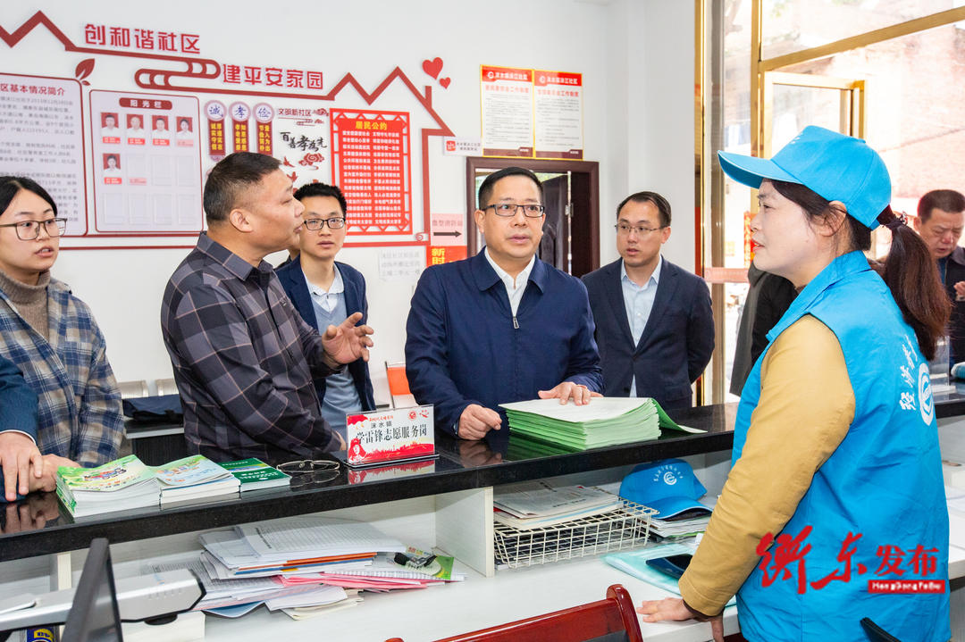 图:县委副书记、县长蒋崇华在洣水镇洣江社区了解五经普工作开展情况