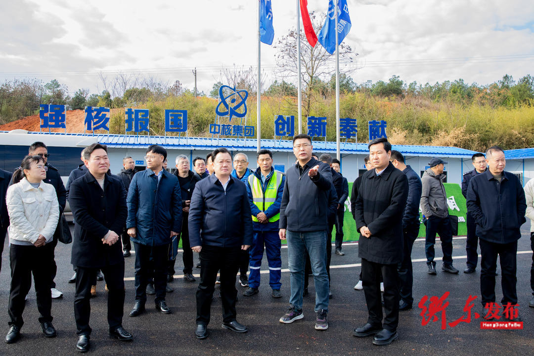 在湖南中核绿谷环境科技有限公司伴生物料项目现场,谭建华一行实地查看了项目建设进度以及复工复产情况,与项目有关负责人认真交谈,详细询问当前存在的困难,并现场交办相关部门跟踪落实。