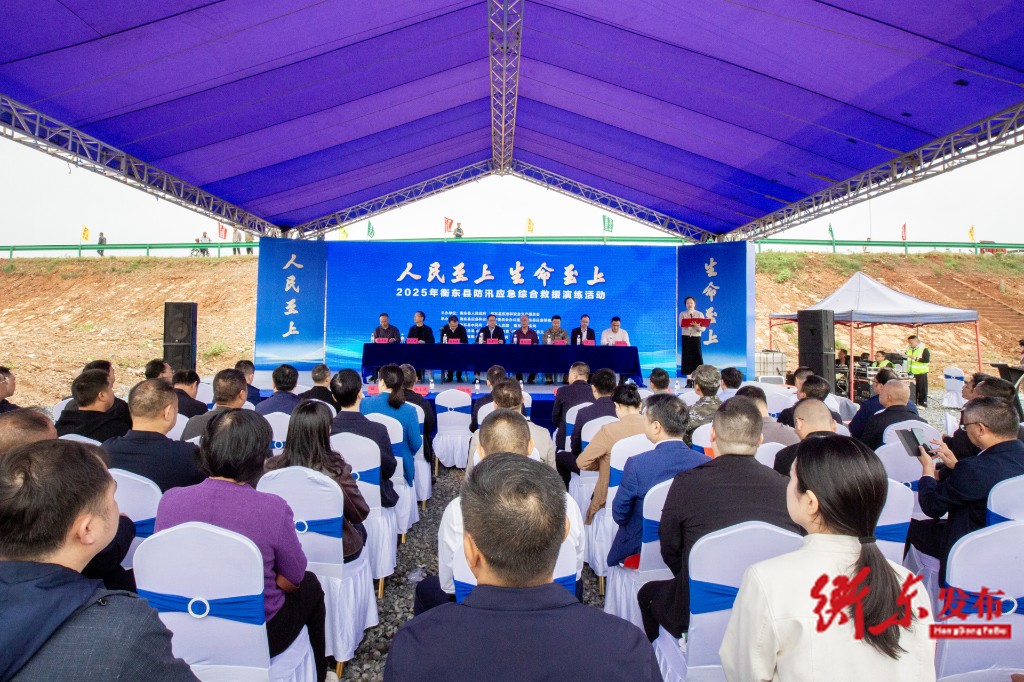 衡东融媒9月26日讯(融媒体记者 谭琳 杨波)9月26日,衡东县开展 2025 年防汛应急综合救援演练活动,市应急管理局党委委员、副局长吉仕统,县委副书记、县长蒋崇华出席活动并讲话。