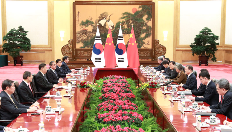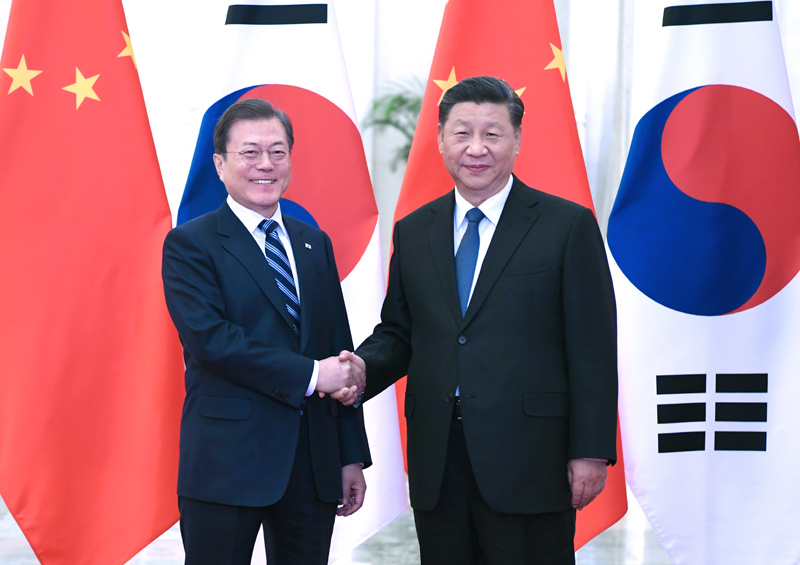 12月23日,国家主席习近平在北京人民大会堂会见韩国总统文在寅。新华社记者 饶爱民 摄